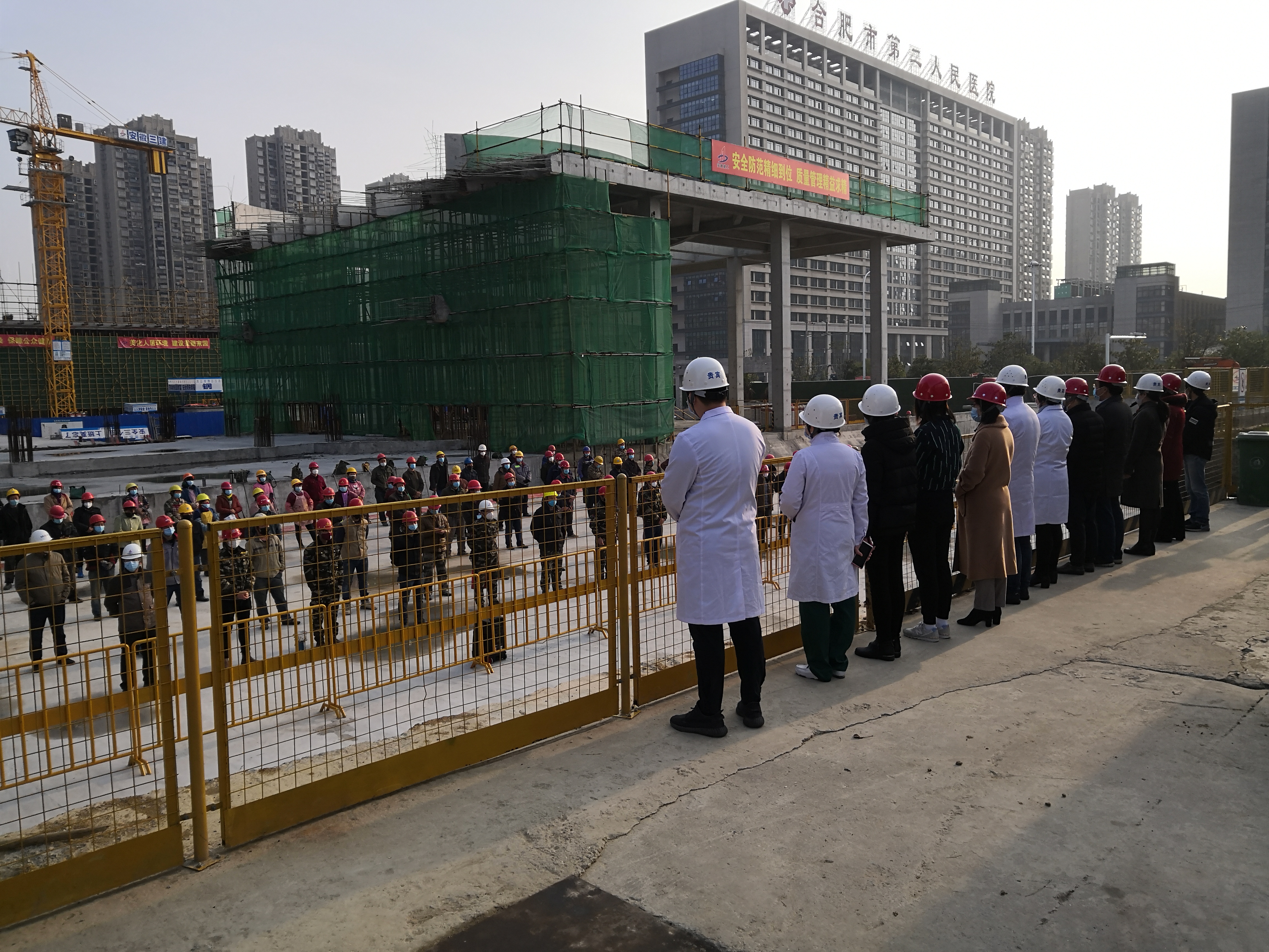 八公司積極配合合肥市疫情防治工作,春節(jié)期間加班將原合肥市二院項(xiàng)目辦公區(qū)移交給市二院作為隔離病房使用。為盡快復(fù)工,2月24日,項(xiàng)目部與市二院負(fù)責(zé)人溝通協(xié)商重建臨時(shí)辦公區(qū)。2月28日,項(xiàng)目負(fù)責(zé)人高瑞凱帶領(lǐng)項(xiàng)目部全體管理人員突擊辦公區(qū)建設(shè),3月2日,辦公區(qū)完成建設(shè),將施工現(xiàn)場與市二院高危區(qū)域徹底隔絕,順利實(shí)現(xiàn)復(fù)工。為做好項(xiàng)目防疫宣傳教育工作,3月3日項(xiàng)目部聯(lián)合市二院疫情防治辦技術(shù)專家為農(nóng)民工開展“疫情防治教程”培訓(xùn),為農(nóng)民工兄弟講解“消毒”、“洗手”、“口罩佩戴”、“交通出行”等正確做法,普及防控知識,確保廣大職工健康安全。